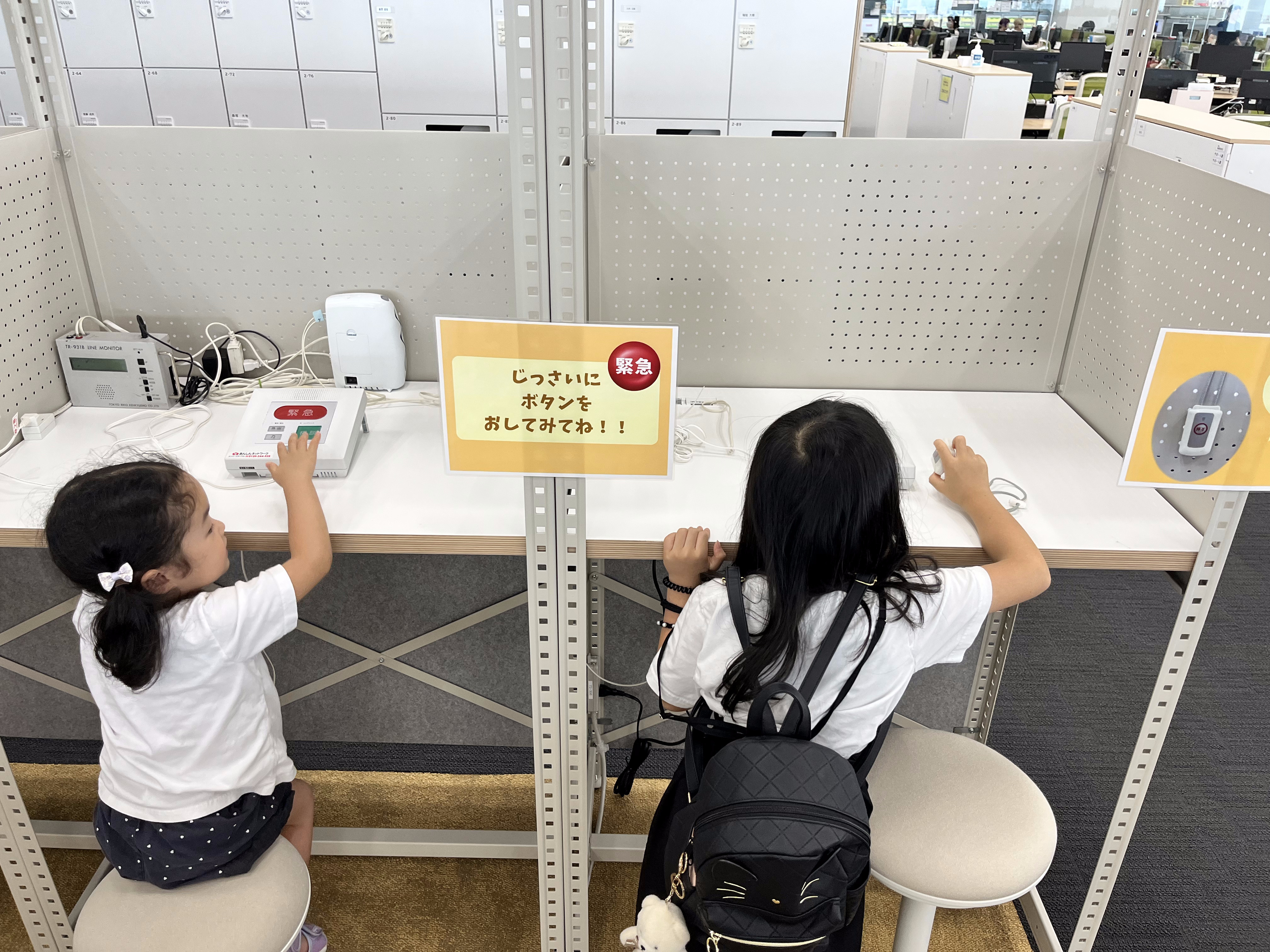 オフィス案内ももちろんですが、普段社員が設定している販売用の緊急通報装置を体験できるスペースも!!