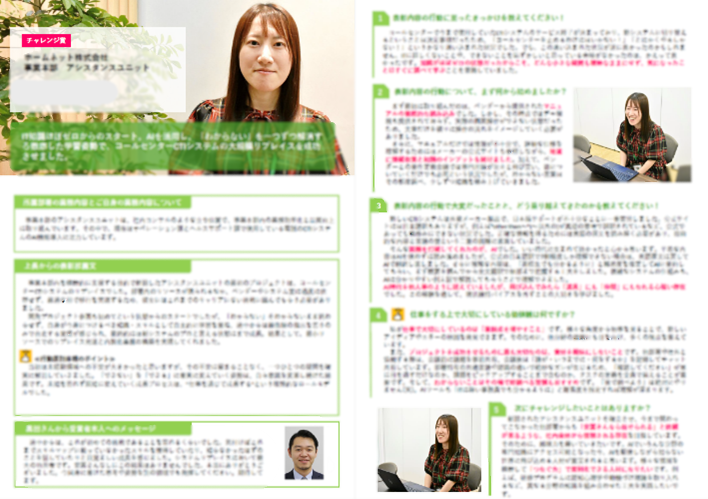 どんな行動をしてきたのかを本人インタビュー形式でまとめて社内掲示。
